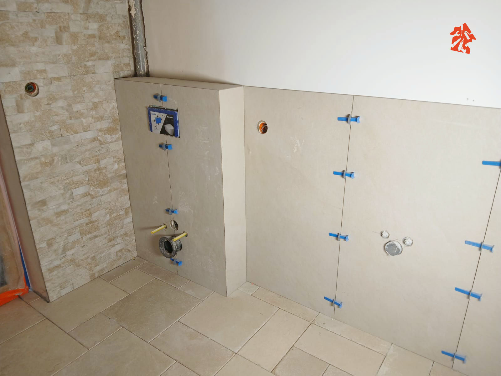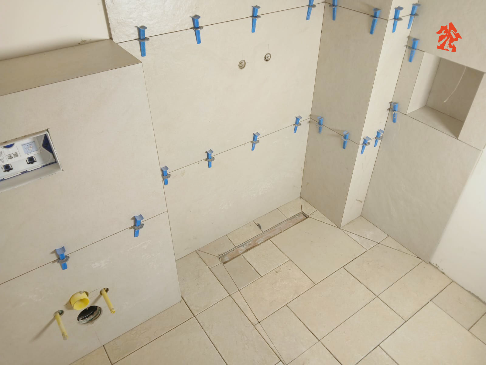Działamy dalej w cichym i spokojnym Pomiechówku, aktualnie jesteśmy na etapie wykańczania łazienek. Klient ma spójną wizję tego czego chce w swoim domu i w łazienkach też zostały położone na niektórych ścianach płytki ze strukturą kamienia identyczną jak w salonie (możecie obejrzeć we wpisie z 10 lutego).
