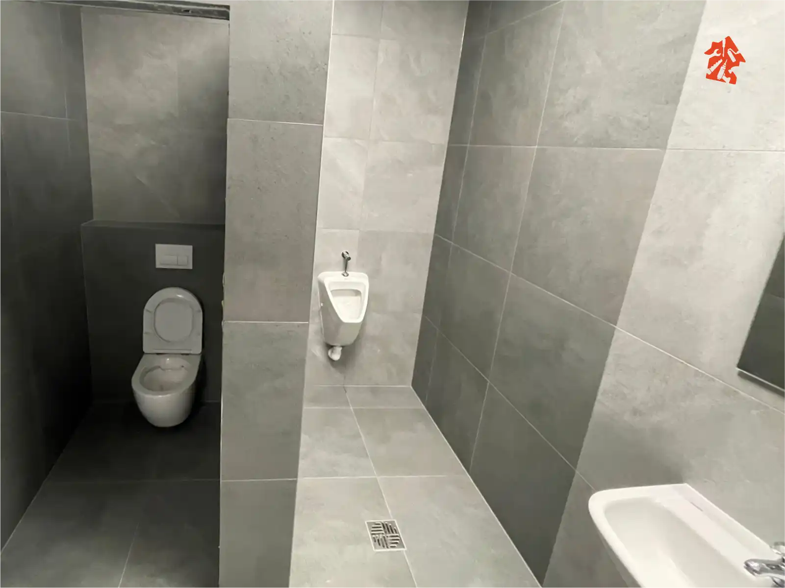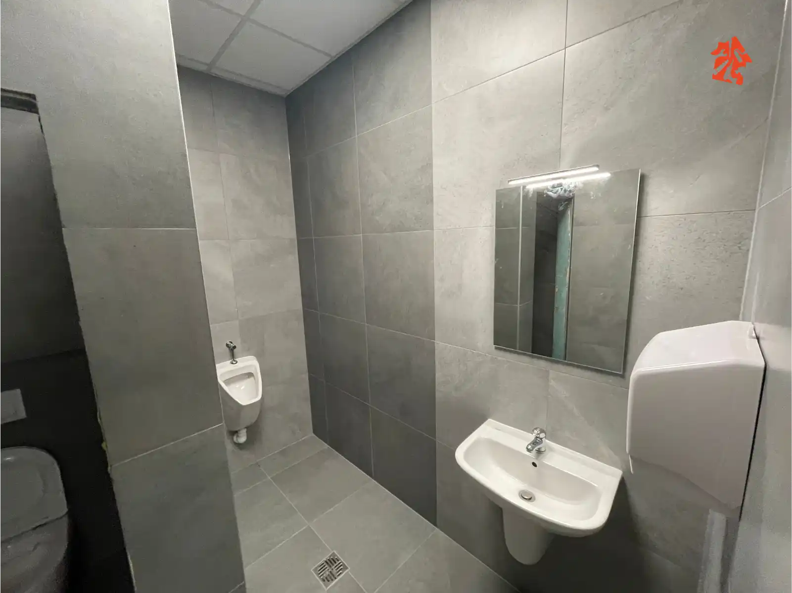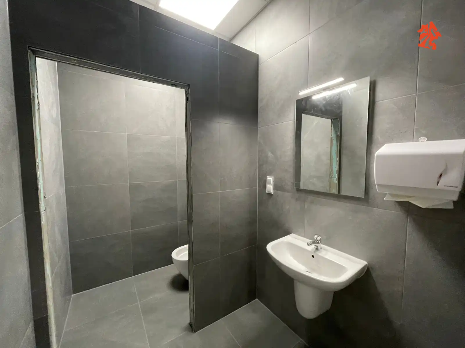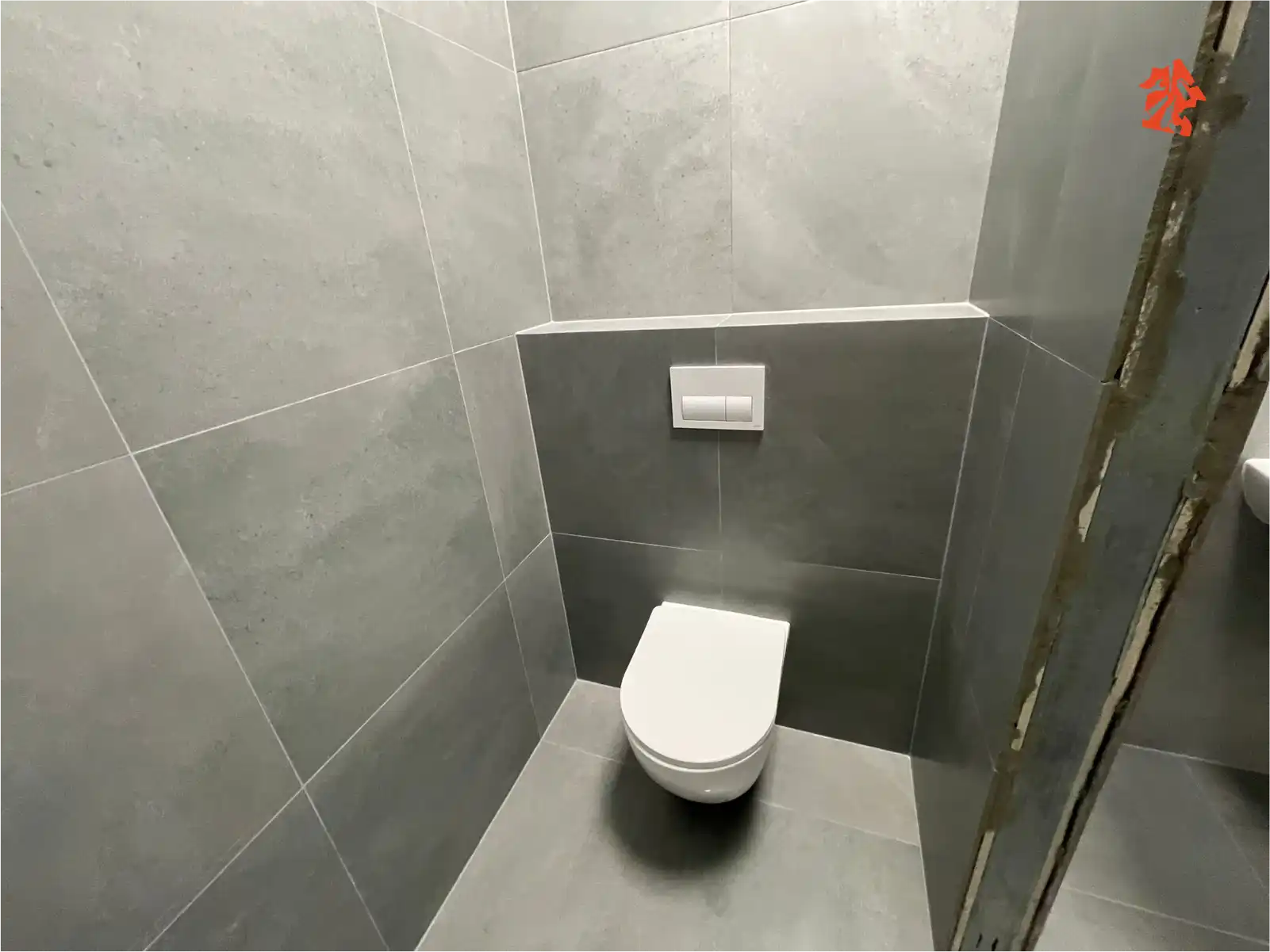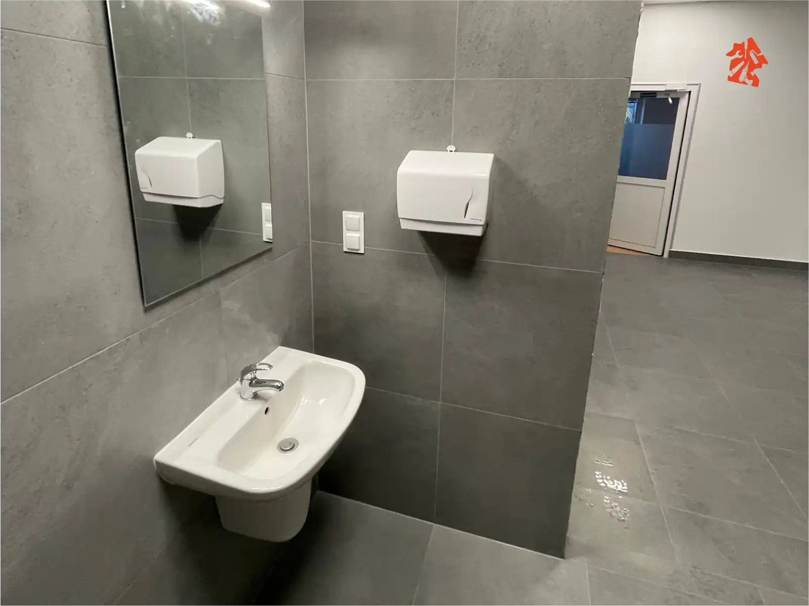Zakres prac dosyć spory i tak informacyjnie położyliśmy 4 palety płytek gresowych na podłogach i ścianach. Do tego oczywiście potrzebne było mnóstwo kleju, fug, silikonów. Kolorystyka stonowana - wszędzie szare płytki o rozmiarze 60x60 cm w dwóch odcieniach. Pomieszczenia firmowe, więc szaleństw kolorystycznych raczej nie można się spodziewać. Pomieszczenia przede wszystkim mają być funkcjonalne i łatwe w utrzymaniu czystości. Korzysta z nich na co dzień naprawdę sporo pracowników.