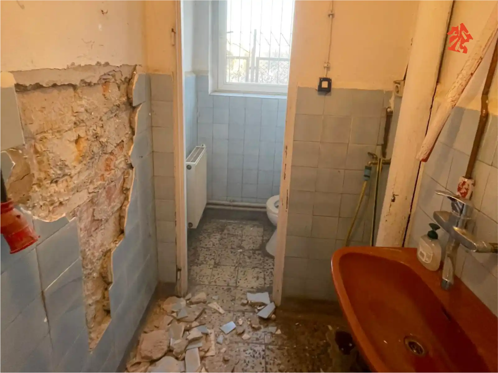 Podjęliśmy się sporego wyzwania w Cybulicach Małych. Klient zlecił nam remont mocno wysłużonych pomieszczeń biurowych oraz łazienki. Dodatkowo mamy zająć się częścią magazynową, głównie posadzkami i elewacją budynku.