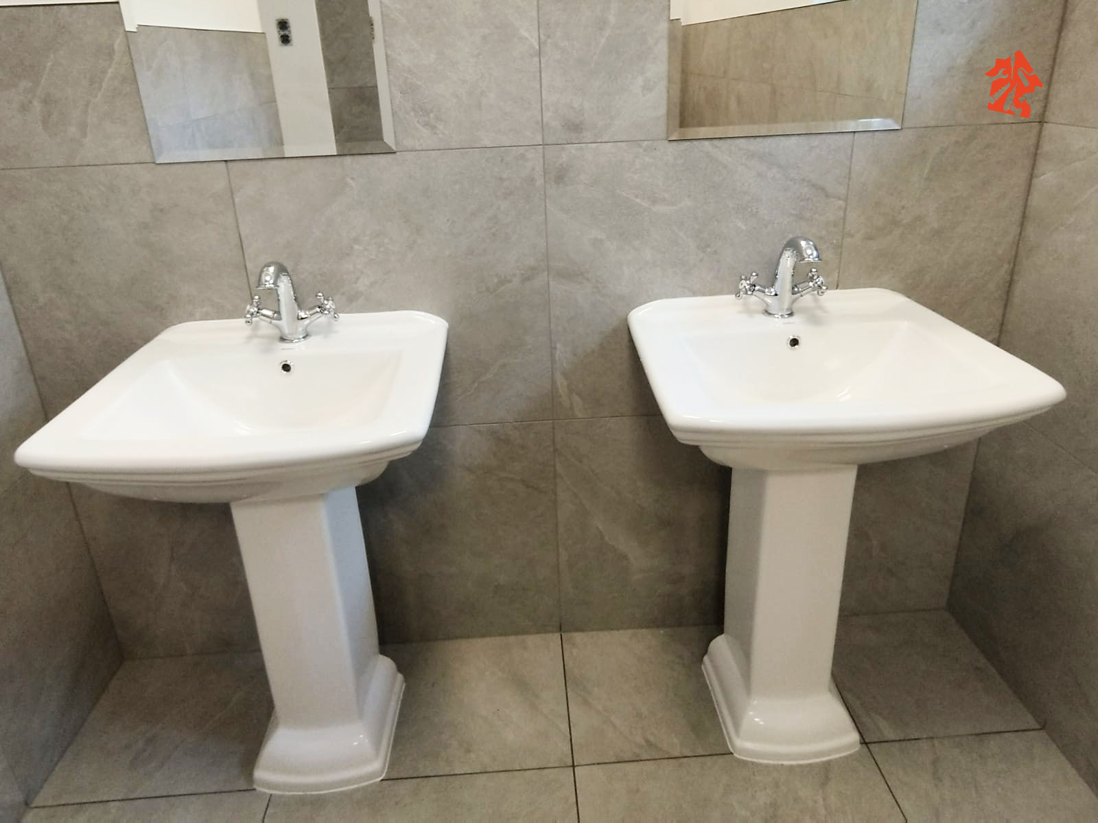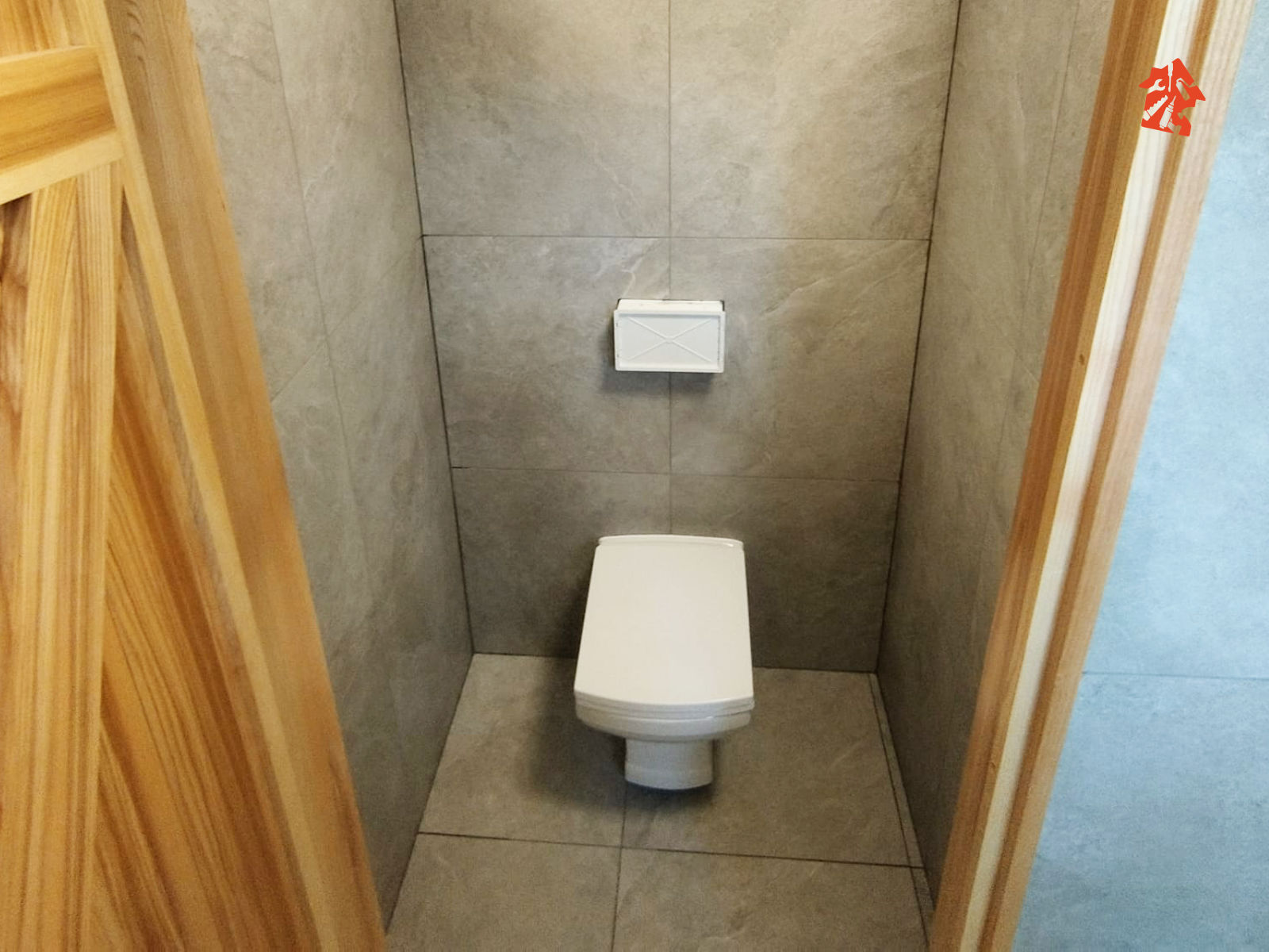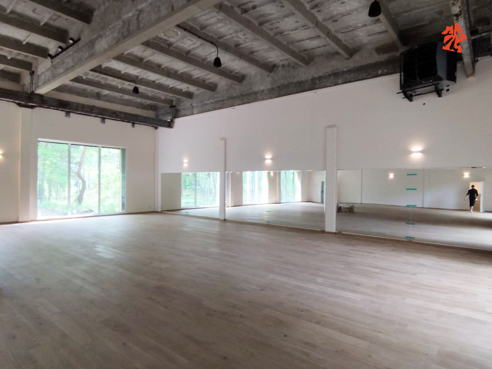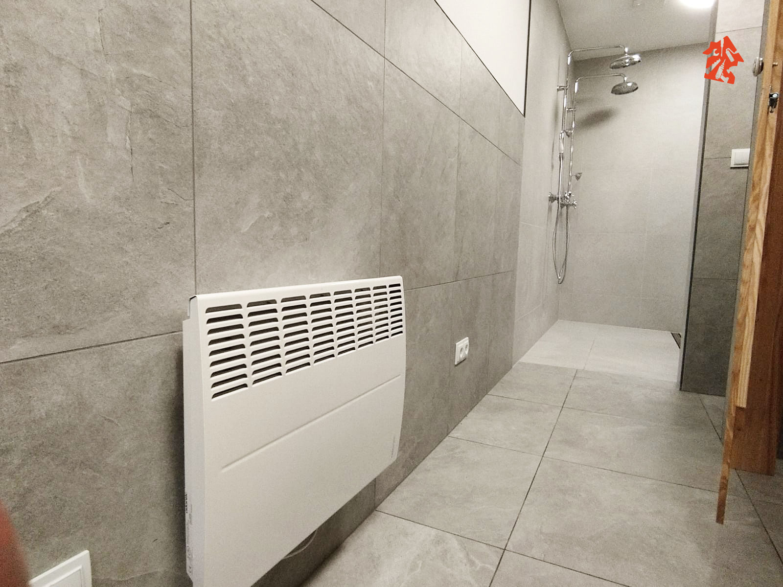 Dla zachowania walorów historycznych klient zostawił napis na ścianie: "Sprawne rakiety gwarancją obrony Warszawy". Dodatkowo została suwnica pod sufitem 🏗️. Ze względu na dużą powierzchnię oraz planowaną ilość ćwiczących rumbę, salsę, tango i inne tańce łazienki też muszą być do tego typu obiektu dostosowane. Dlatego też jest sporo kabin, natrysków oraz szafek. Projekt zamknięty, my i klient zadowoleni👍😍