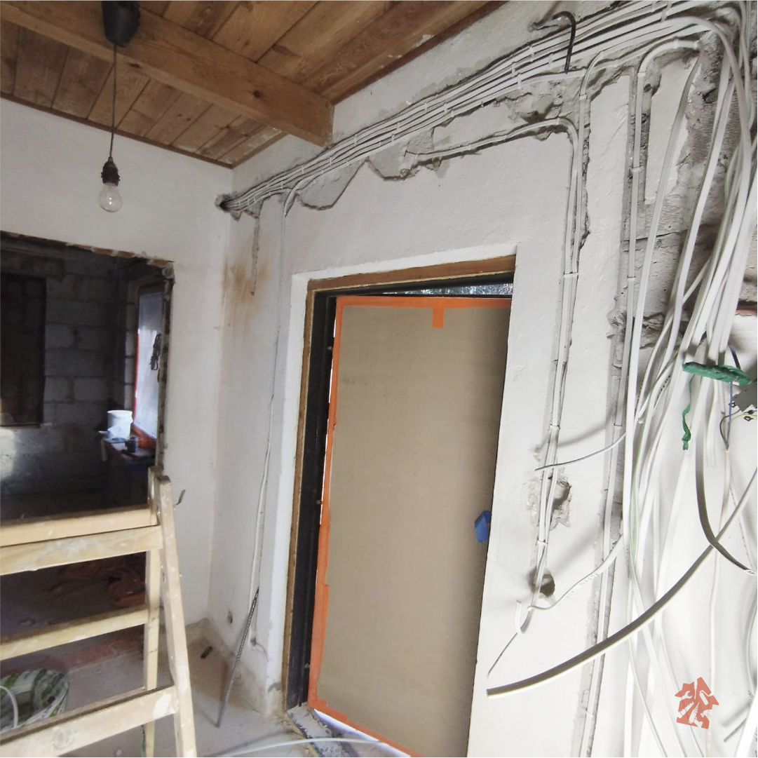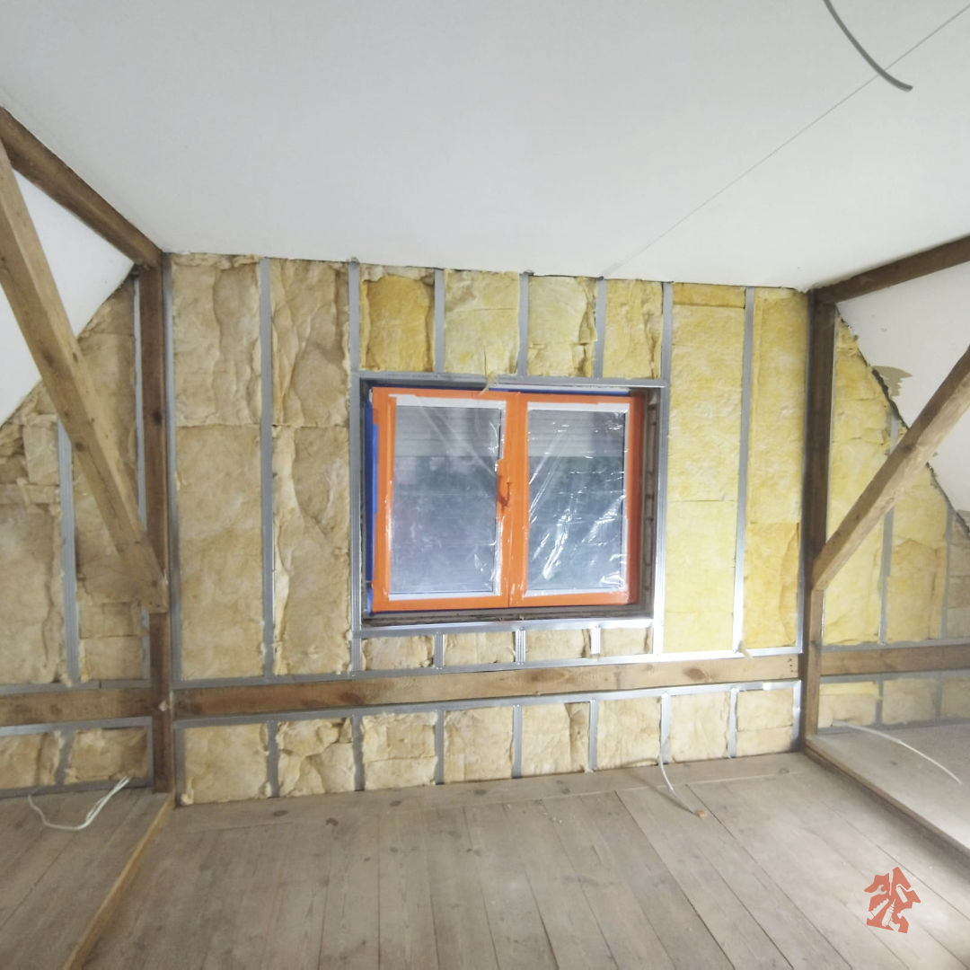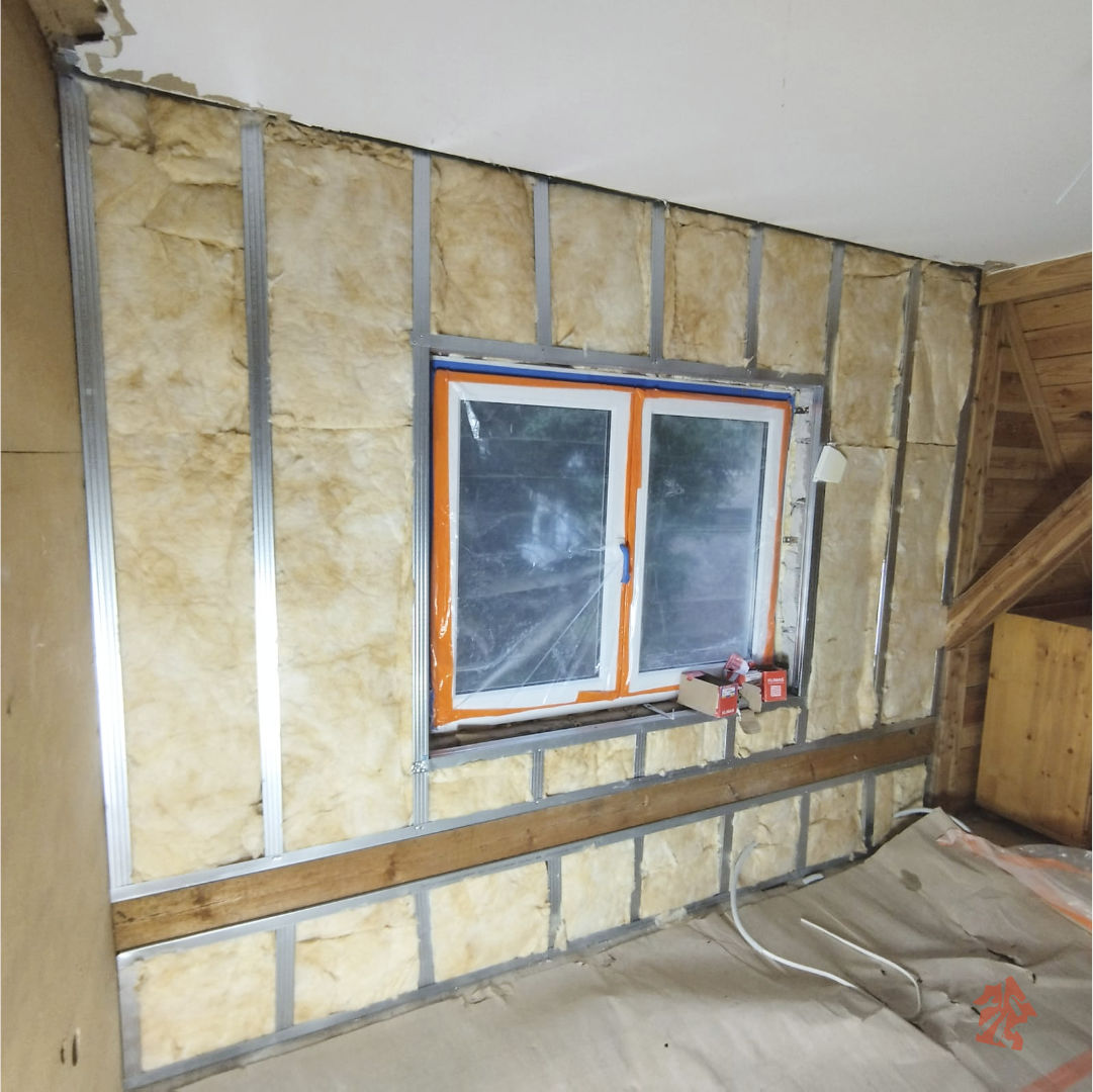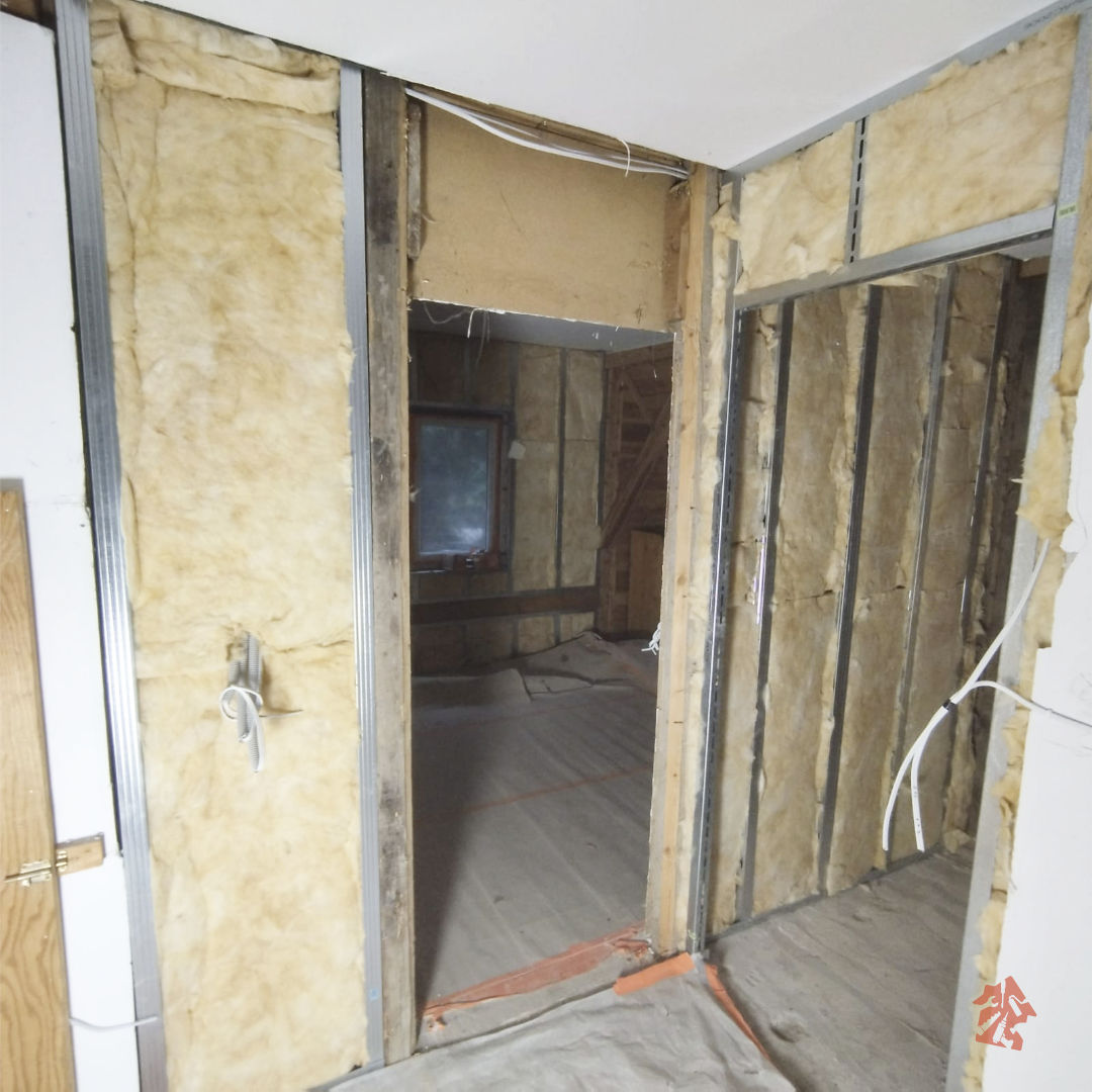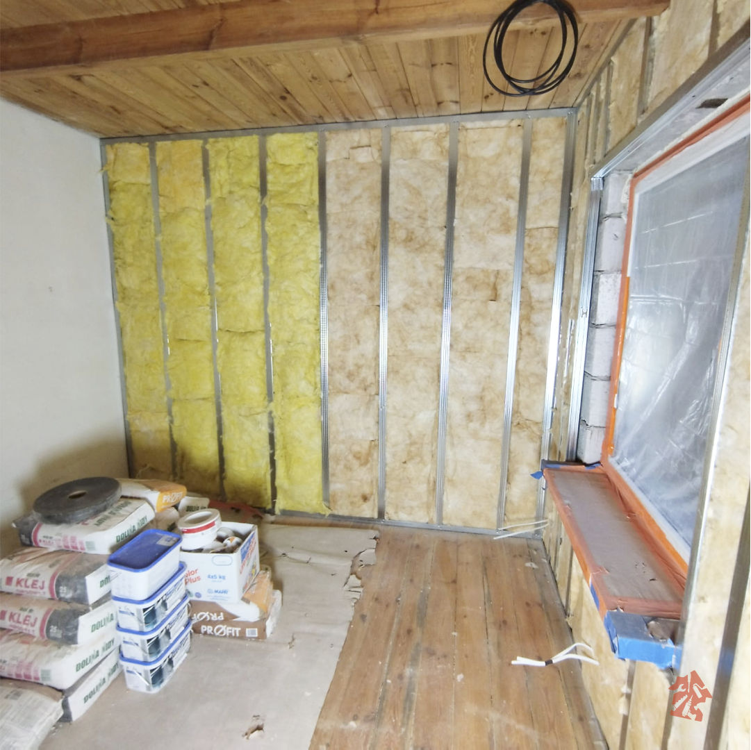 Oczyszczanie domku ze starych boazerii drewnianych, skuwanie płytek, usuwanie starej instalacji elektrycznej to nie jest łatwa, czysta i przyjemna praca, ale też ją trzeba wykonać i szybko się z tym uporaliśmy. Na pierwszy ogień poszły stelaże pod płyty gipsowo-kartonowe i ocieplenie wełną mineralną która dodatkowo będzie solidnie wygłuszać pomieszczenia. Aby nie uszkodzić okien i drzwi wszystko dokładnie zabezpieczyliśmy foliami. Brak solidnego zabezpieczenia skutkuje potem dodatkową pracą, bo zawsze jakaś kropelka farby gdzieś się przyklei. Cała instalacja elektryczna została usunięta i poszła do utylizacji. W całym domku już położyliśmy nową solidną instalację i oczywiście stara zabytkowa wręcz skrzynka z bezpiecznikami została wymieniona na nową spełniającą obecne standardy bezpieczeństwa. W starej nie było wyłączników różnicowo-prądowych co nie jest zbyt bezpieczne w użytkowaniu. Teraz już nie będzie obaw, że kogoś porazi prąd. Już niedługo następna porcja zdjęć z naszej realizacji - bądźcie czujni :)