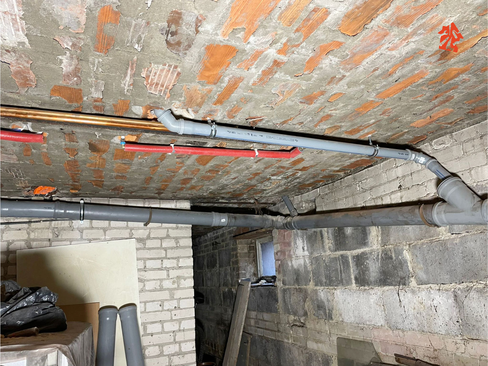 Instalacja wody ciepłej i zimnej rozprowadzona, miedziane rury do ogrzewania też ukończone. Do tego całkowicie nowa instalacja elektryczna.
