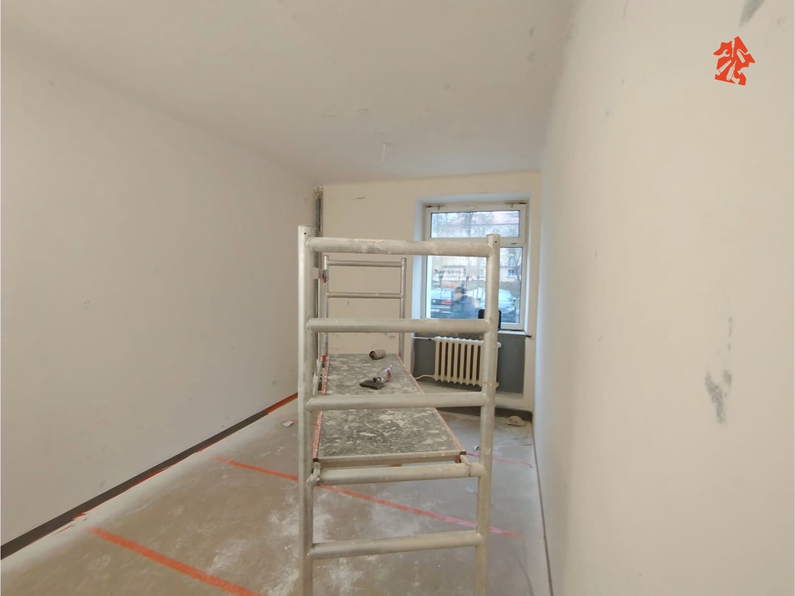 Do remontu mieliśmy 4 pomieszczenia. W jednym położyliśmy nowy gres, wymieniliśmy drzwi wejściowe oraz pomalowaliśmy ściany. W pozostałych pomieszczeniach do wykonania były gładzie gipsowe, częściowa wymiana instalacji elektrycznej, korytek teletechnicznych oraz oświetlenia. Na podłogach ułożyliśmy wytrzymałą wykładzinę PVC która wytrzyma intensywne użytkowanie i nie jest zbyt droga.