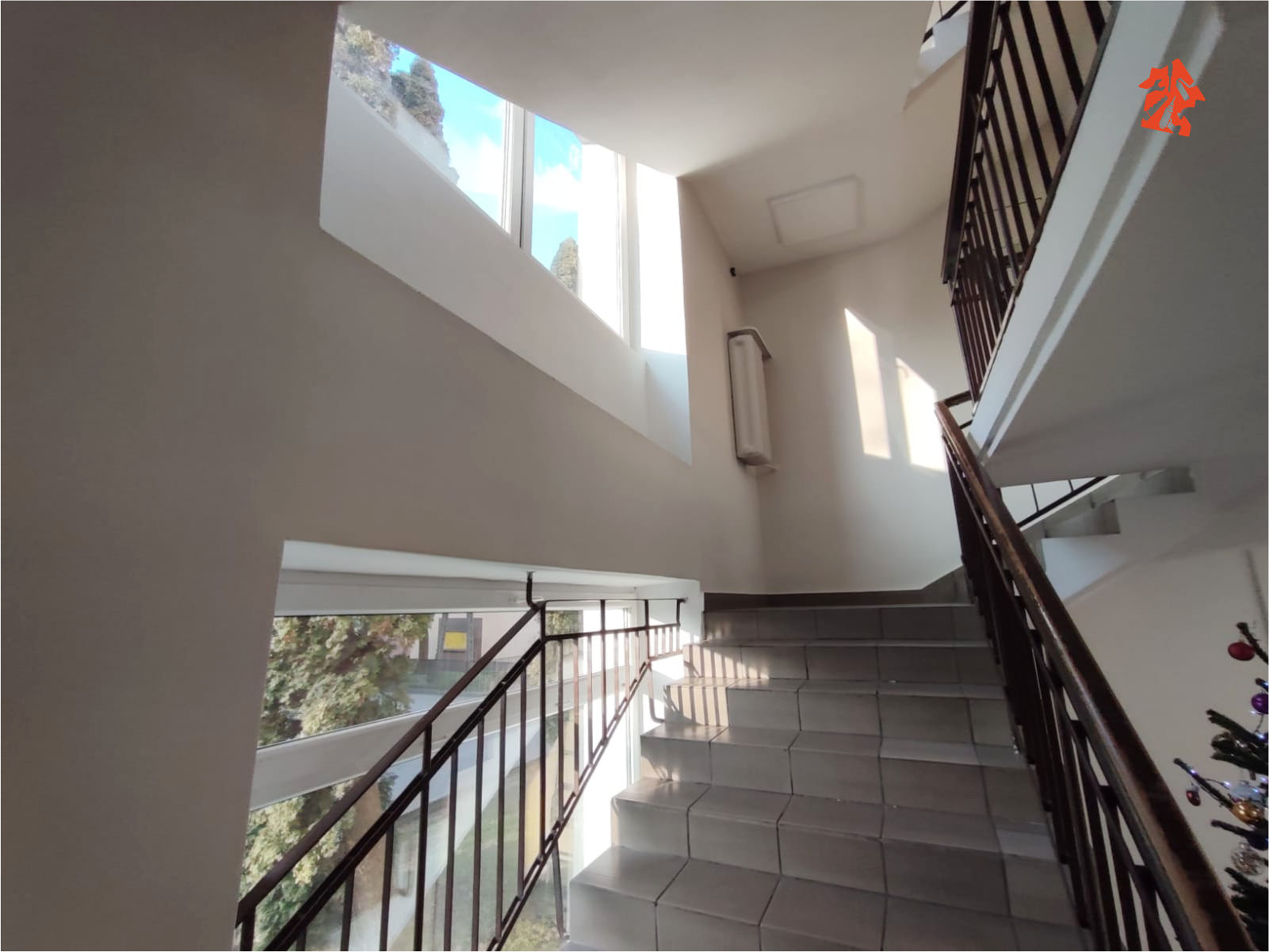 Na początek uzupełniliśmy ubytki w ścianach na korytarzach, zostały położone w wymaganych miejscach gładzie i na koniec ściany zostały pomalowane.