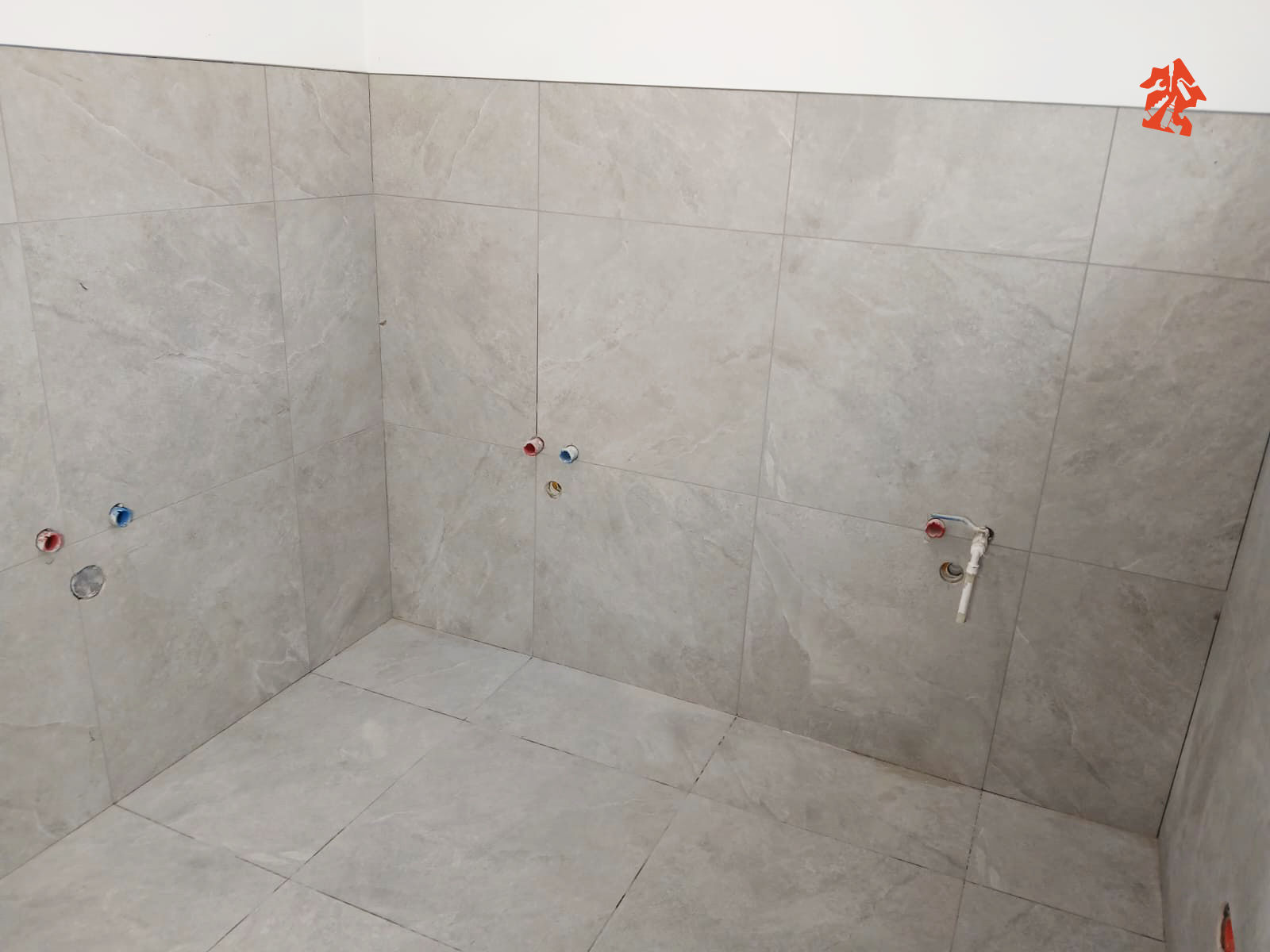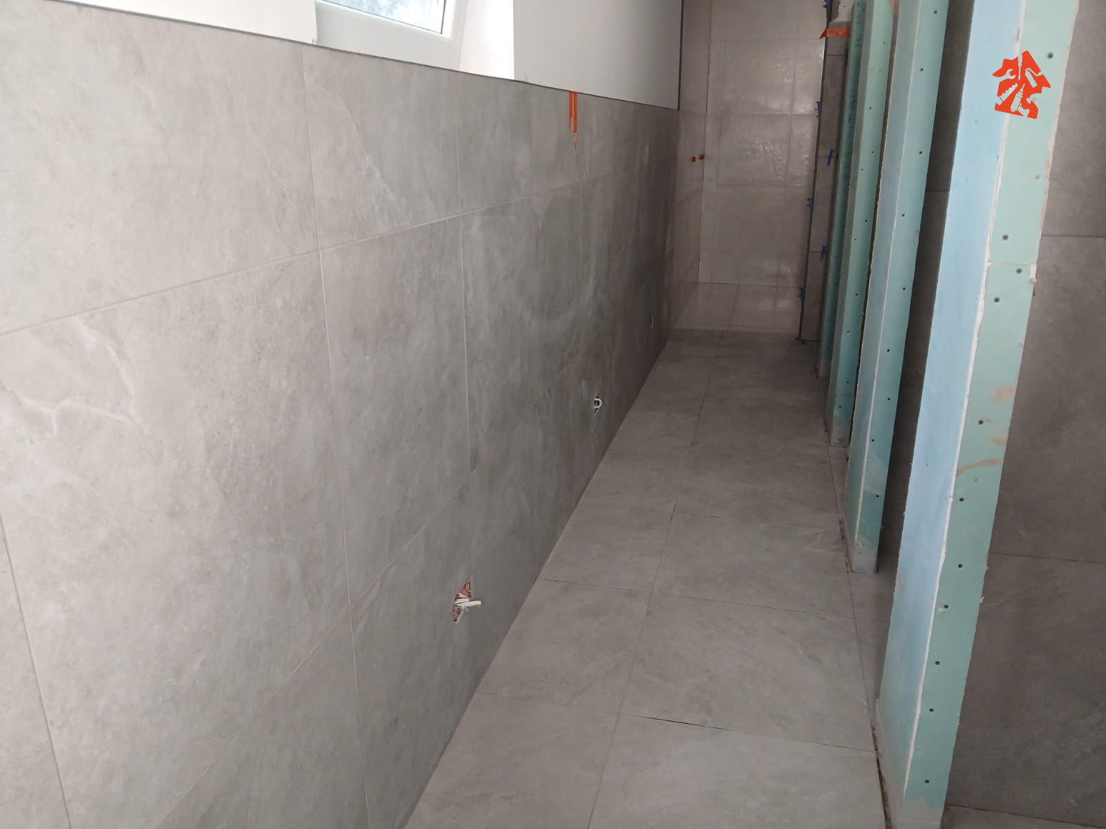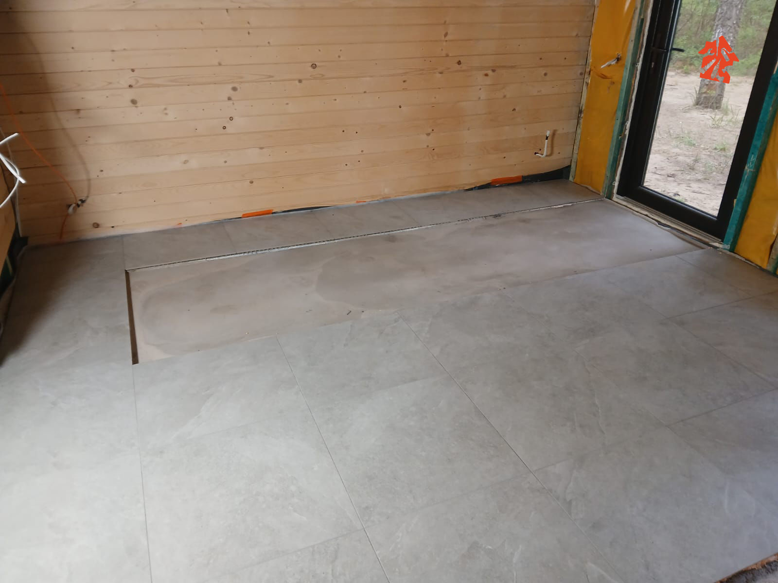 Przy wejściu możecie zobaczyć jak robimy wylewkę samopoziomującą, w tym fragmenty wejściowe będą wykonane z innego materiału i muszą się poziomować dlatego też zostały zabezpieczone odpowiednie powierzchnie.