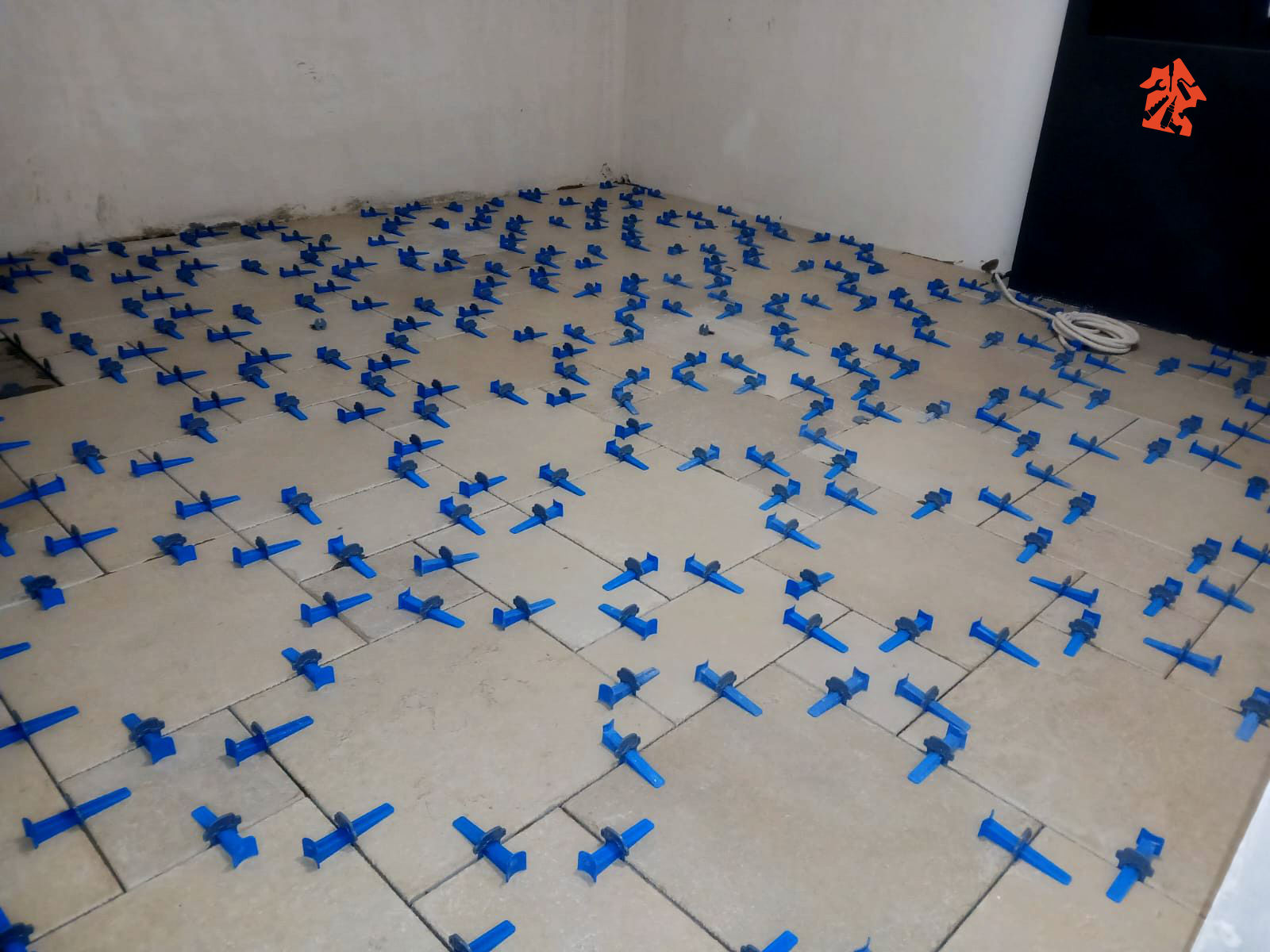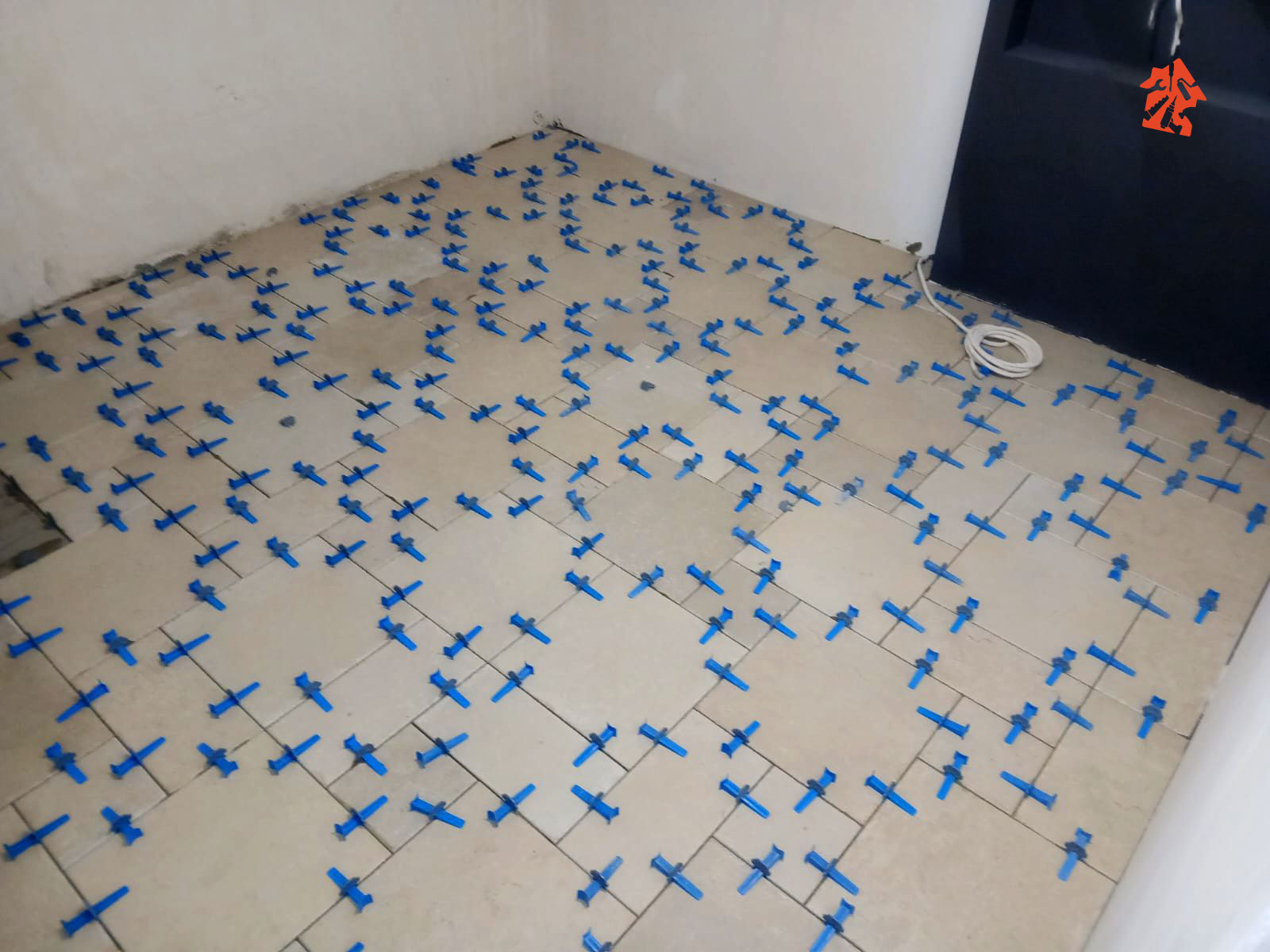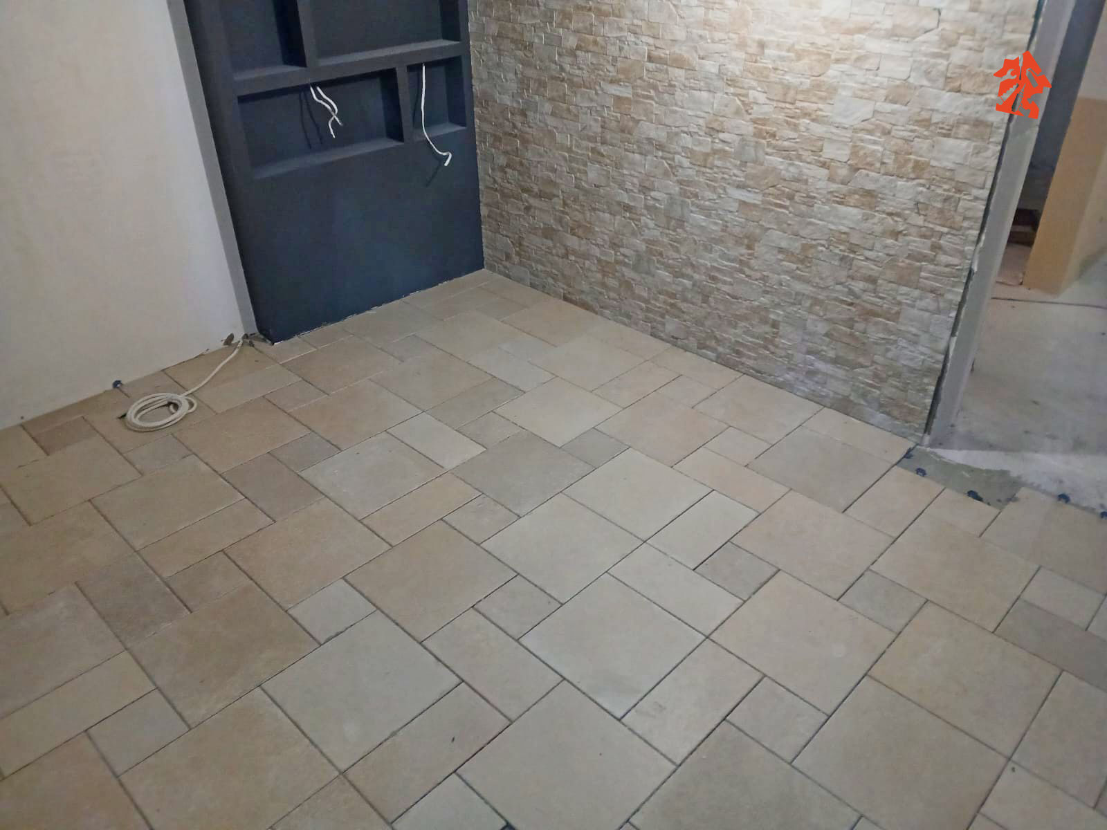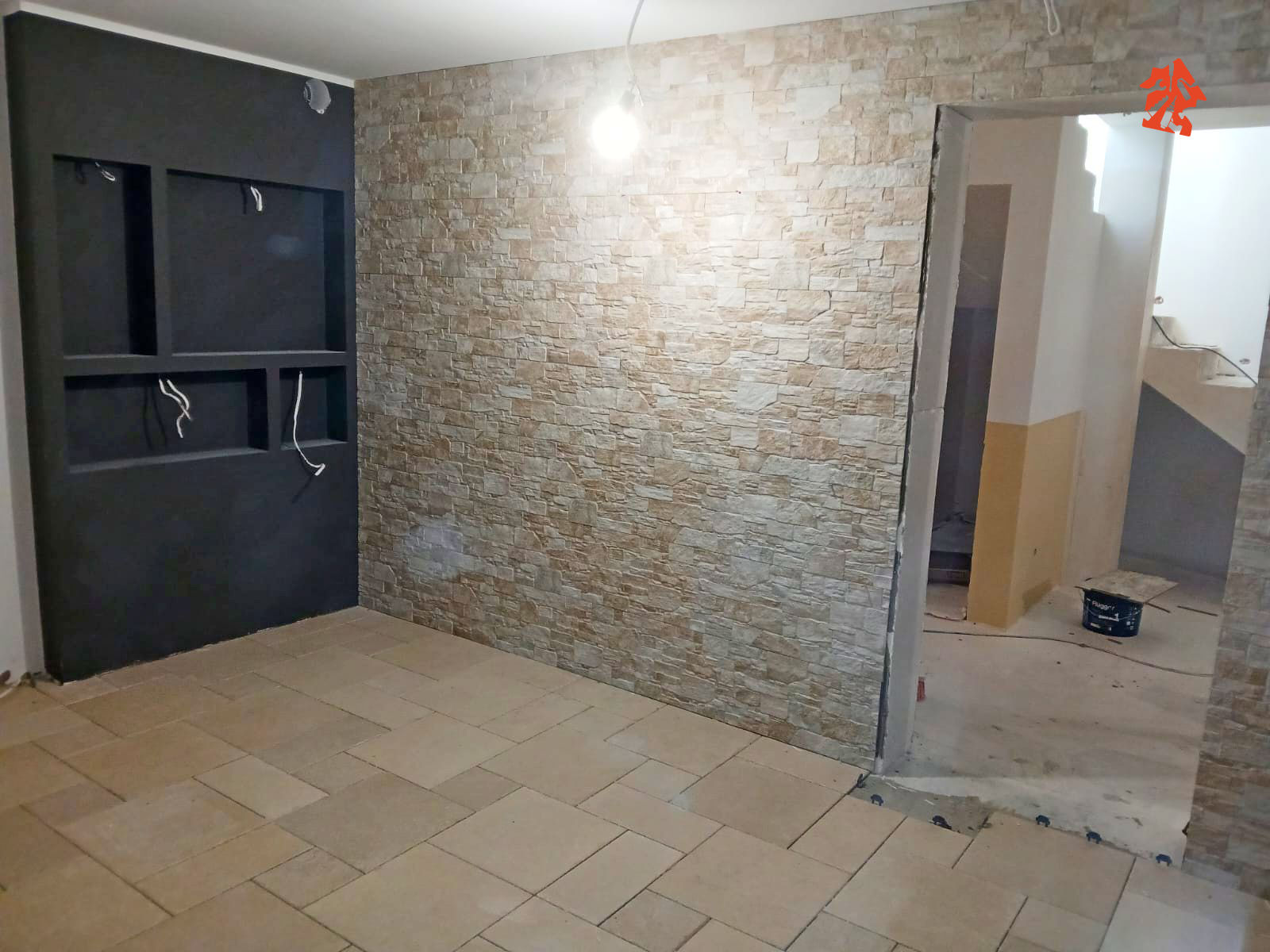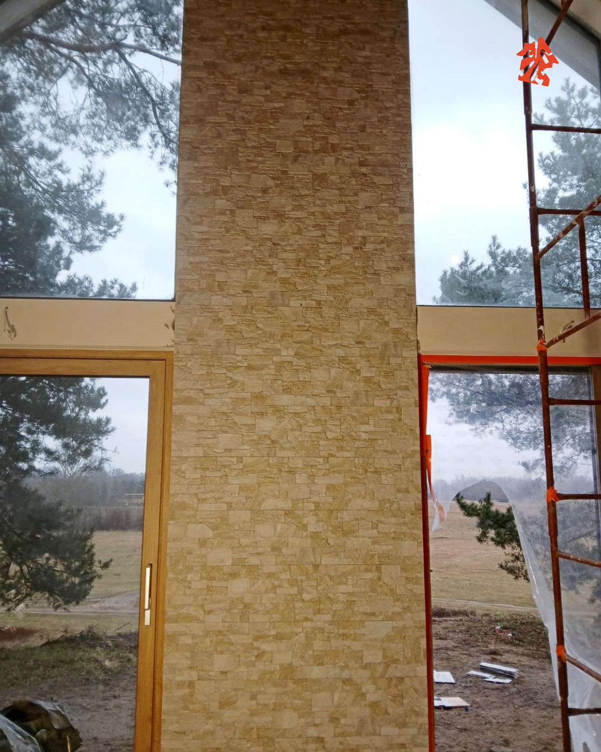 Na początek macie zdjęcia ściany wykończonej płytkami ze strukturą kamienia. Niestety nie są to płyty 60x60 cm więc praca dosyć powoli się posuwała, ale samozaparcie i systematyczność robi swoje. Jakby ktoś nie znał to te niebieskie elementy na płytkach to służą do uzyskania idealnie równej powierzchni :) Sporym wyzwaniem okazała się ściana w salonie, gdzie klient też sobie zażyczył obłożenie płytkami ze strukturą kamienia. Przy takich wysokościach to oczywiście musieliśmy zastosować rusztowanie które zresztą widać na zdjęciach. Ale efekt końcowy naprawdę robi wrażenie!!!