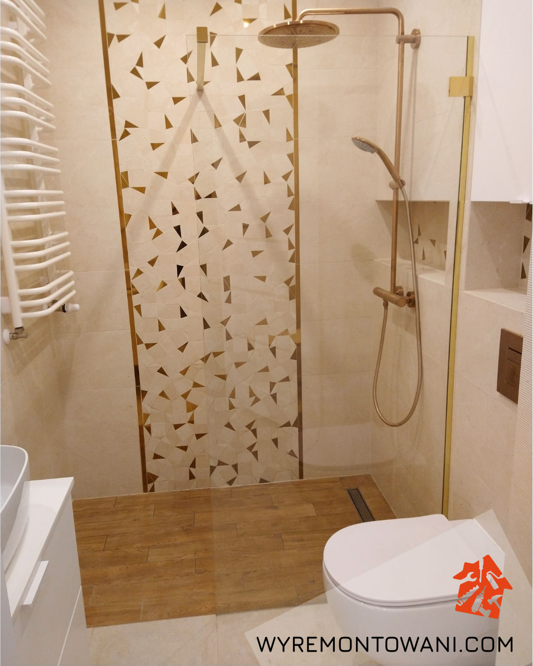 Choć łazienka ze znaczną ilością złotego koloru nie jest wyborem dla każdego, możemy zdecydować się na złoto w roli dodatków. Wtedy pojedyncze złote akcenty będą przykuwać naszą uwagę, wyróżniając się na tle innych materiałów. Do ścian ze złotymi elementami doskonale pasuje złota armatura, co widać na zdjęciach poniżej. No i jak wam się podoba taka wersja ze złotem?